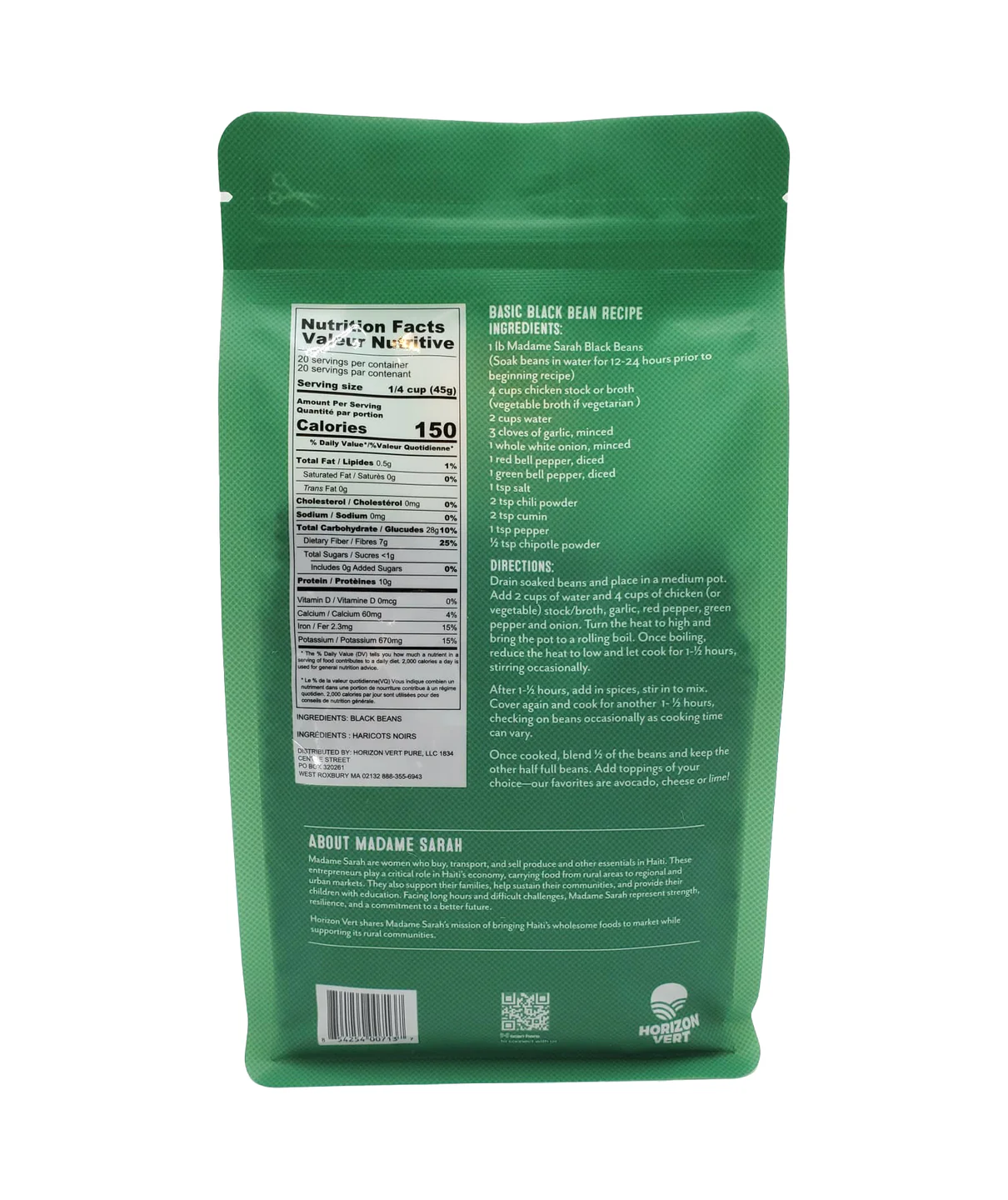 Madame Sarah Dried Black Beans (also known as frijoles negros or haricots noirs) are a pantry essential for anyone who loves rich, flavorful meals. These high-quality beans are all-natural, ethically sourced, and packed with protein, fiber, and essential nutrients.